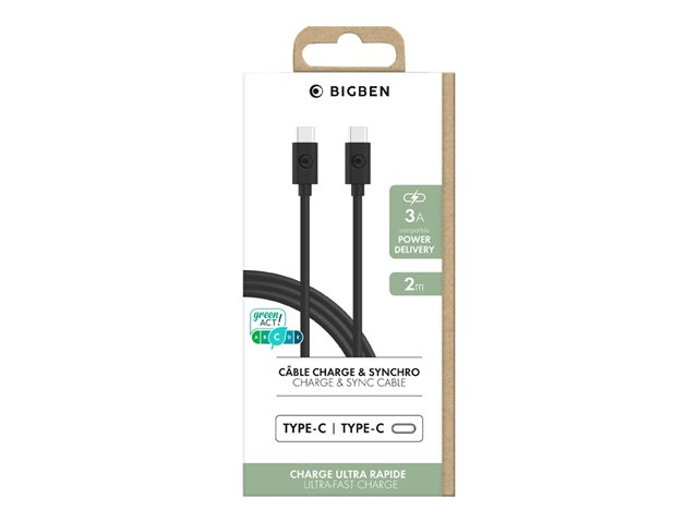 Bigben - Câble USB - 24 pin USB-C (M) pour 24 pin USB-C (M) - 3 A - 2 m - noir