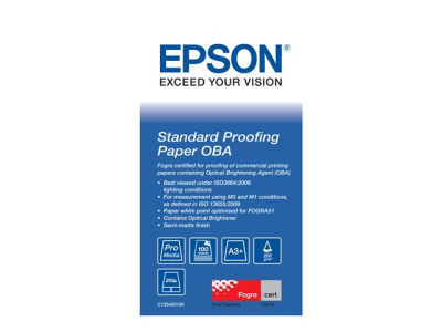 Venant compléter la gamme existante d'Epson, ce papier d'épreuvage permet aux entreprises spécialisées en épreuvage, aux agences de design et aux imprimeries de créer des épreuves couleurs normalisées Fogra51. Cette dernière version du papier Standard Proofing Paper contient un agent de blanchiment optique (OBA) pour être en adéquation avec la blancheur des papiers de production utilisés dans le secteur de l'impression.
