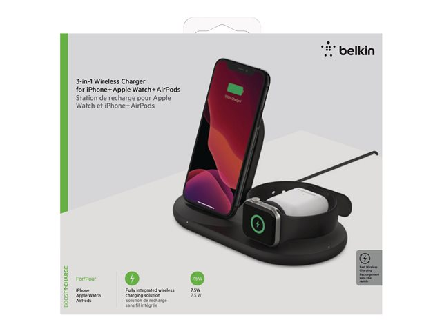Belkin BOOST CHARGE - Support de chargement sans fil - 7.5 Watt - noir - pour Apple AirPods; AirPods Pro; iPhone 11, 12, 7, 8, SE, X, XR, XS, XS Max; Watch