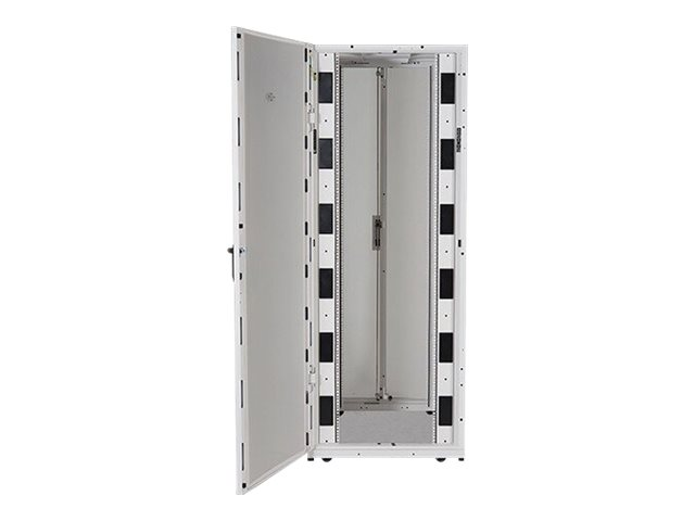 Large baie avec options avancées de gestion des câbles, pour applications serveur et réseau haute densité. Hauteur 42U permettant un passage par les ouvertures de porte.