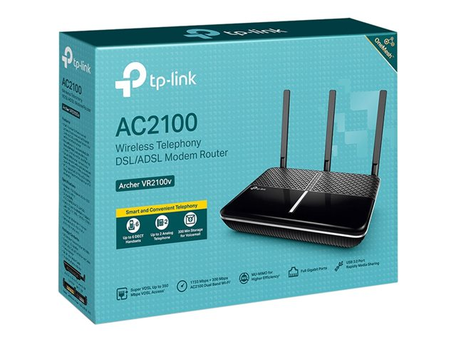 TP-Link Archer VR2100v V1 - - routeur sans fil - - modem ADSL commutateur 4 ports - 1GbE - ports WAN : 2 - Wi-Fi 5 - DECT - Bi-bande - adaptateur de téléphone VoIP (DECT) ARCHER VR2100V
